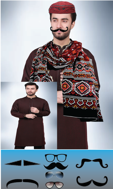Make me Sindhi Saen is a trendy collection of Sindhi topi and a stylish mustache that gives you a different look, change your looks like a Sindhi wadara. By using Make me Sindhi Saen application you can take the image from the camera or gallery, edit the photo and looks like a Sindhi Saen.
