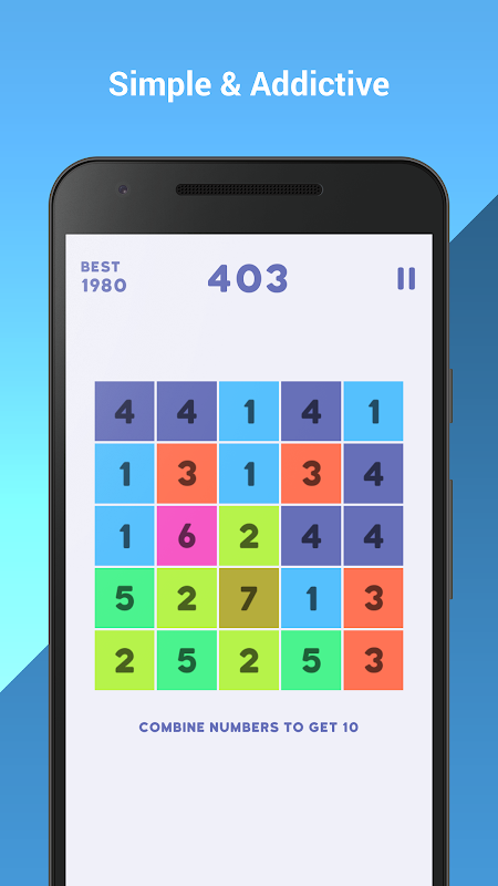 Just get 10はシンプルでカラフルなデザイン。お使いのタブレットもサポートされています。スコアをリーダーボードに送信します。アチーブメントのロックを解除します。無料のパズルゲーム。お楽しみください!