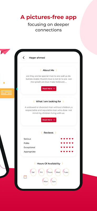 - 信仰に焦点を当てたマッチング: 私たちの使命は、宗教的に意識の高いイスラム教徒をイスラム教の原則を尊重した結婚生活で結びつけることです。