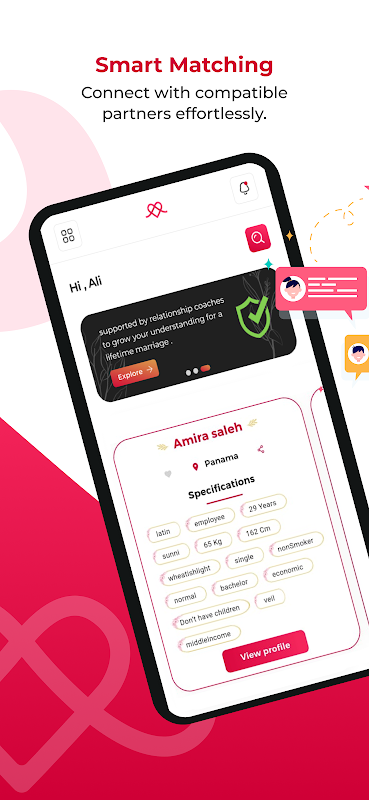- パーソナライズされたコーチング: 尊敬されるイスラムの結婚コーチをフィーチャーした「コーチ」セクションから洞察とアドバイスを得ることで、結婚の決断をナビゲートするのに役立ちます。