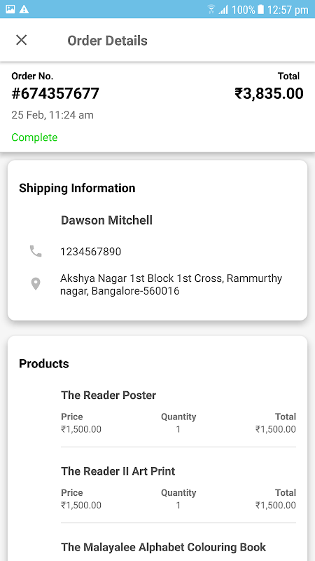 * Order Details: View all the details of the orders placed including billing, shipping, and product details.