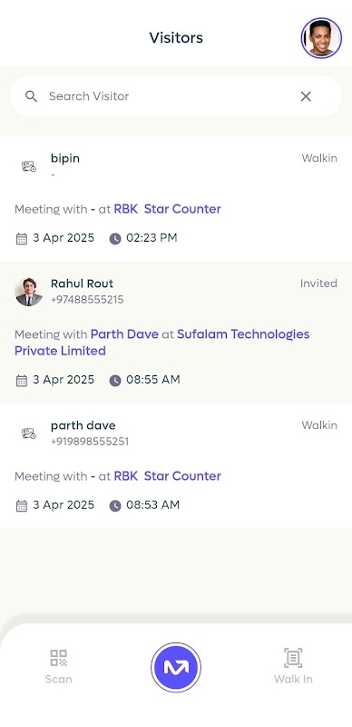 ・到着前の訪問者情報:セキュリティチームは、ManagTecアプリで予約済みの今後の訪問者のプロフィール、訪問目的、面談の詳細などを完全に把握できます。これにより、手入力を一切必要とせず、迅速かつシームレスなチェックインが可能になります。