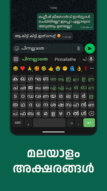 3.どこでもマラヤーラム語を入力してください!マングリッシュ キーボードは、任意のアプリ内で直接使用できます。
