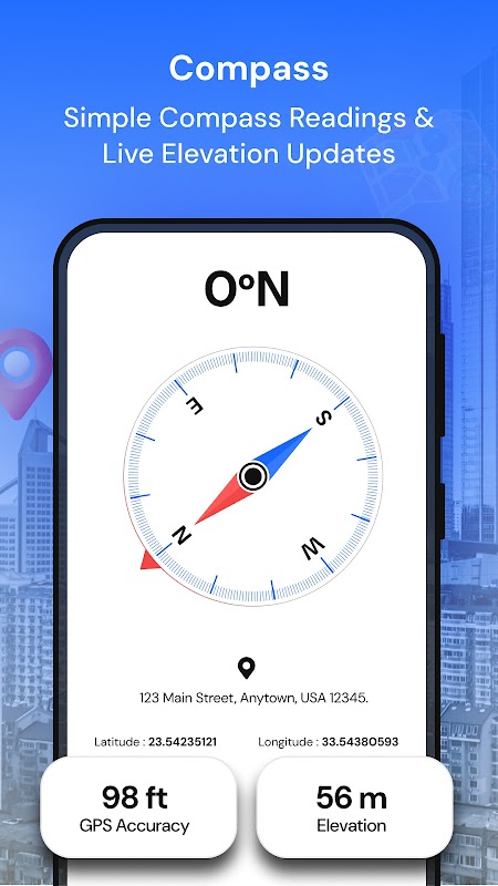 2. コンパス: リアルタイムの GPS データ、高度の詳細、GPS 精度インジケーターを使用してコンパスの方向を取得します。