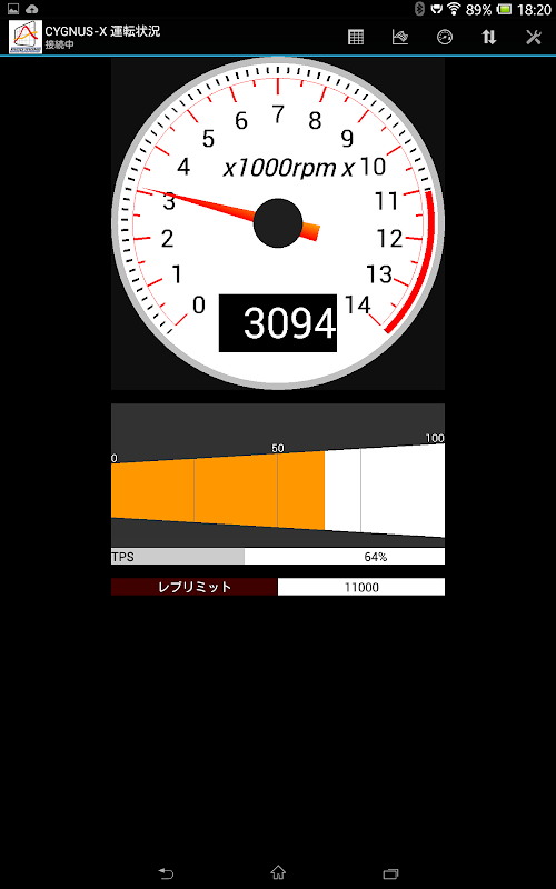 ・リアルタイムでタコメータとスロットル開度モニターを表示できます。