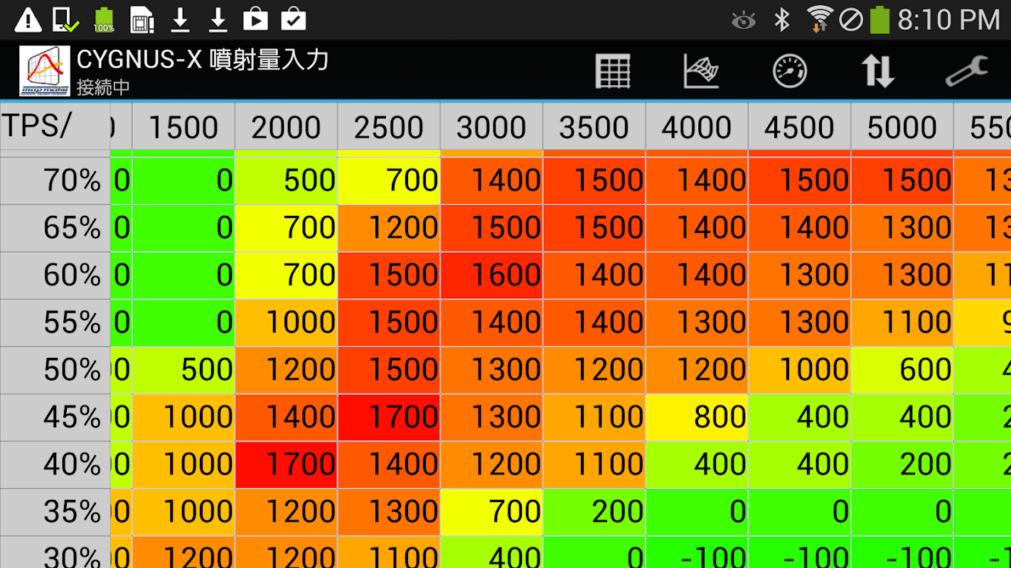 ・燃料マップに、現在のエンジン回転数、スロットル位置をリアルタイムで表示します。