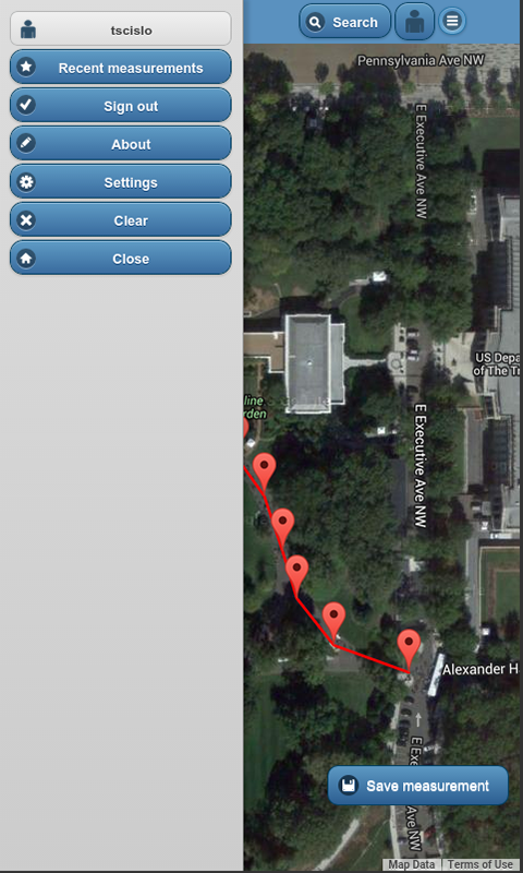 の無料地図ルーラーには、簡単に地図上で選択された点間の距離や面積を測定することができます。あなたがやらなければならないことは、単にトップアプリケーションメニューから赤いマーカーボタンを使用して、マップ上のポイントの束を追加するだけです。その後、距離や面積の計算は自動的に行われ、その結果が左上隅に表示されます。マップの中央のファインダーは、正確にあなたがメーカーを配置する場所を決定するのに役立つはずです。いいえGPS位置取得が必要とされない、すべてのマーカーを手動で追加することができます。検索オプションは、あなただけのファイルを入力にその名前を入力することによって、世界の任意の場所を見つけることができ、その後、場所を直接地図の中心に表示することによりれますが見つかりました。