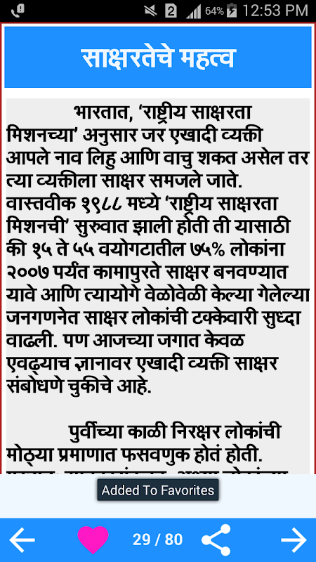 या अँप्लिकेशन मधील निबंध चा अभ्यास केल्याने विद्यार्थ्यांच्या विचारशक्तीला वाव मिळेल.विद्यार्थ्यांच्या दृष्टीकोनातून खूपच उपयुक्त असे हे अँप्लिकेशन ..