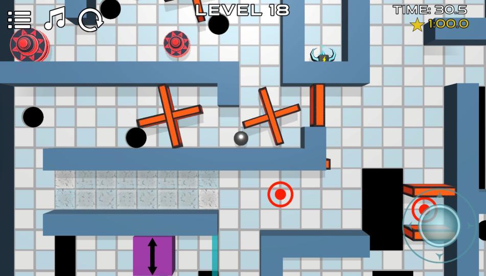 携帯電話を傾けて最後まで到達する物理ベースのパズルゲーム