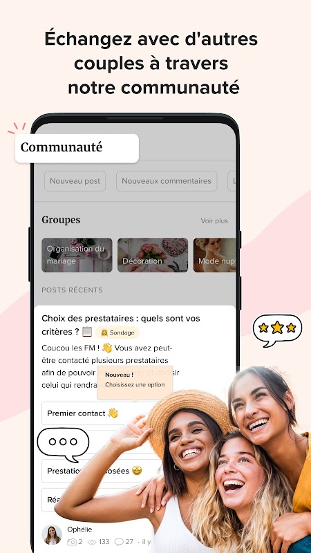 Mariages.netなら、細部までこだわり、一瞬一瞬を大切にできます。アットホームなサンセットセレモニーでも、星空の下での豪華な挙式でも、Mariages.netのアプリは、夢の結婚式を実現するための実用的なツールと無限のインスピレーションを提供し、あらゆる段階であなたをサポートします。