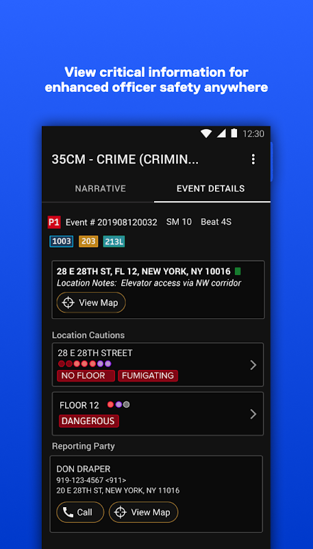 ナラティブの更新や、ディスパッチ、MDT、スマートフォンの間で同期される場所の注意など、リアルタイムのイベントの詳細は、状況の変化に応じて最大 2 番目のアラートを受け取ることを意味します。最先端のセキュリティ機能により、アプリに保存されている情報は安全です。