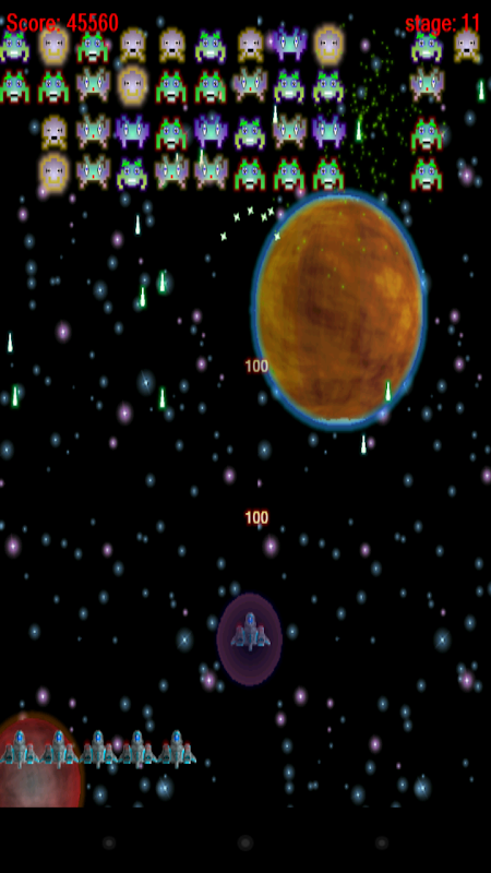 20レベルのスペースシューティングゲーム。