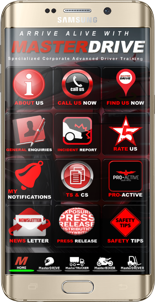 Welcome to the MasterDrive Mobile App. MasterDrive is an Advanced Driver Training company, with our core focus being Defensive Driver Training. With our Mobile App we aim to improve customer convenience, spread road safety awareness and keep our customers informed and engaged at all times.