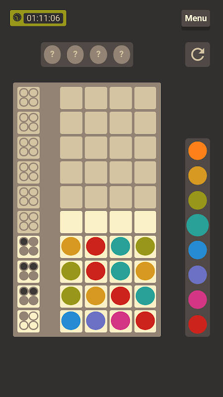 灰色のドット => 元のシーケンスに色が存在しますが、間違った位置にあります。