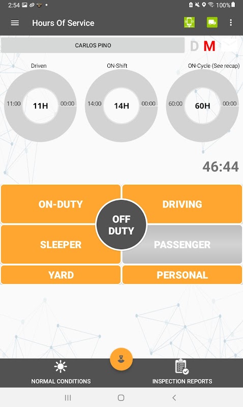 - トラックが 5 分以上静止している場合、デフォルトで非番の勤務になり、ドライバーは適切なステータスを入力する必要があります。