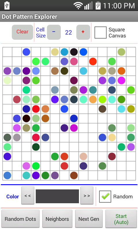 Mathematics is, to a large extent, the study of patterns. Patterns can be visual, numeric, linguistic, rules, formulas, or trends of data. This little app is for teachers and young students in early math. It allows users to create dot patterns to express and communicate their ideas. The Game of Life is also integrated for interested users to get started with cellular automata.
