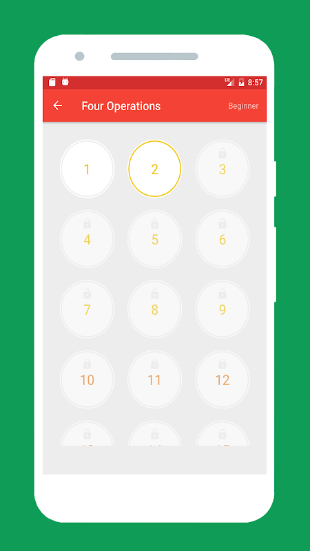 新しいアップデートでは、レベルスキップの数学ゲームをプレイできるようになりました。次のレベルでは、処理の難しさが増し、制限を強制することができます。数学的ゲームに加えて、括弧でくくられた操作が追加されました。指定された時間内に少なくとも10問の質問に答え、正しい比率で90%の成功率を達成することで次のレベルに進むことができます。レベルが上がるにつれて、困難と数字が増えます。時間の制約があると、ゲームでトランザクションを迅速に解決する能力が向上します。