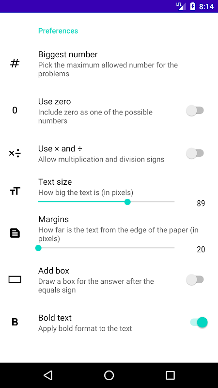 A4 サイズの用紙に基本的な数学の問題を共有および印刷するためのシンプルなアプリ