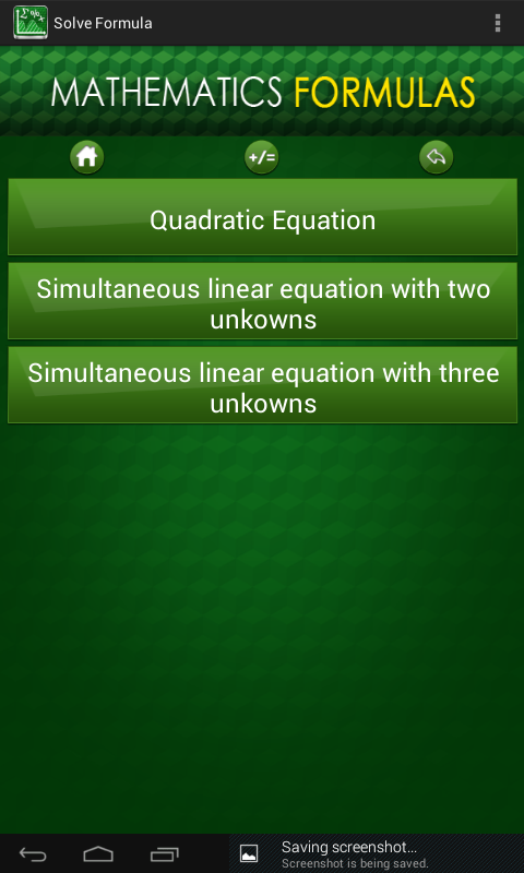 Mathematics Formulas is an application, it can calculate formulas which are the most used and most famous to all people involved in Mathematics.