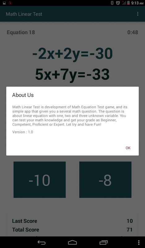 数学の線形方程式のテストを解いてみましょう