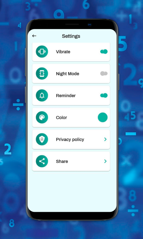 • Night mode: you can turn-on night mode, enjoy and solve maths games for several hours with low brightness.