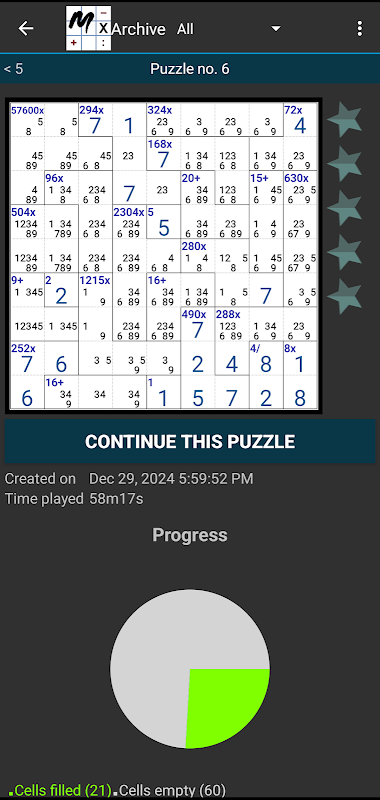 - MathdokuとKiller Sudokuのルールに従い、可能性のある数字のみで「多分」のセルがスマートに埋められた状態でゲームを開始します。