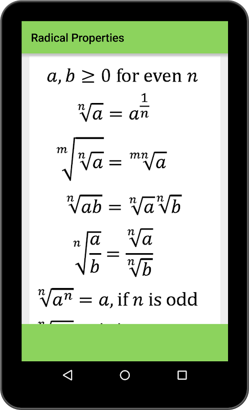 The app lists all the important Maths Algebra formulas. Its very useful for student to save valuable time.