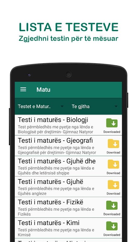 Në MATU kemi bërë përmbledhjen e shumë librave, teksteve dhe informacioneve në një platformë të vetme e cila ka për qëllim përvetësimin e diturisë. Kjo platformë është ndërtuar enkas për të gjithë nxënësit që janë afër përfundimit të shkollës së mesme dhe dëshirojnë të përgatiten me anë të testeve online për provimin e maturës.