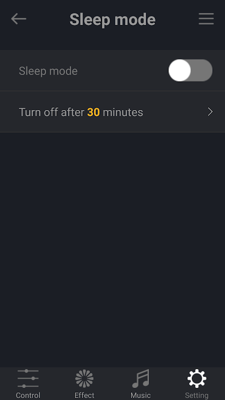3.スリープモード(光がsetted時間内にオフされるまで淡色表示)。