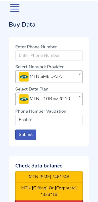 データ、通信時間、通信時間リチャージ PIN、ブロードバンド データ、DSTV および GOTV サブスクリプション、電力支払い、試験ピンを手頃な価格で購入できます。