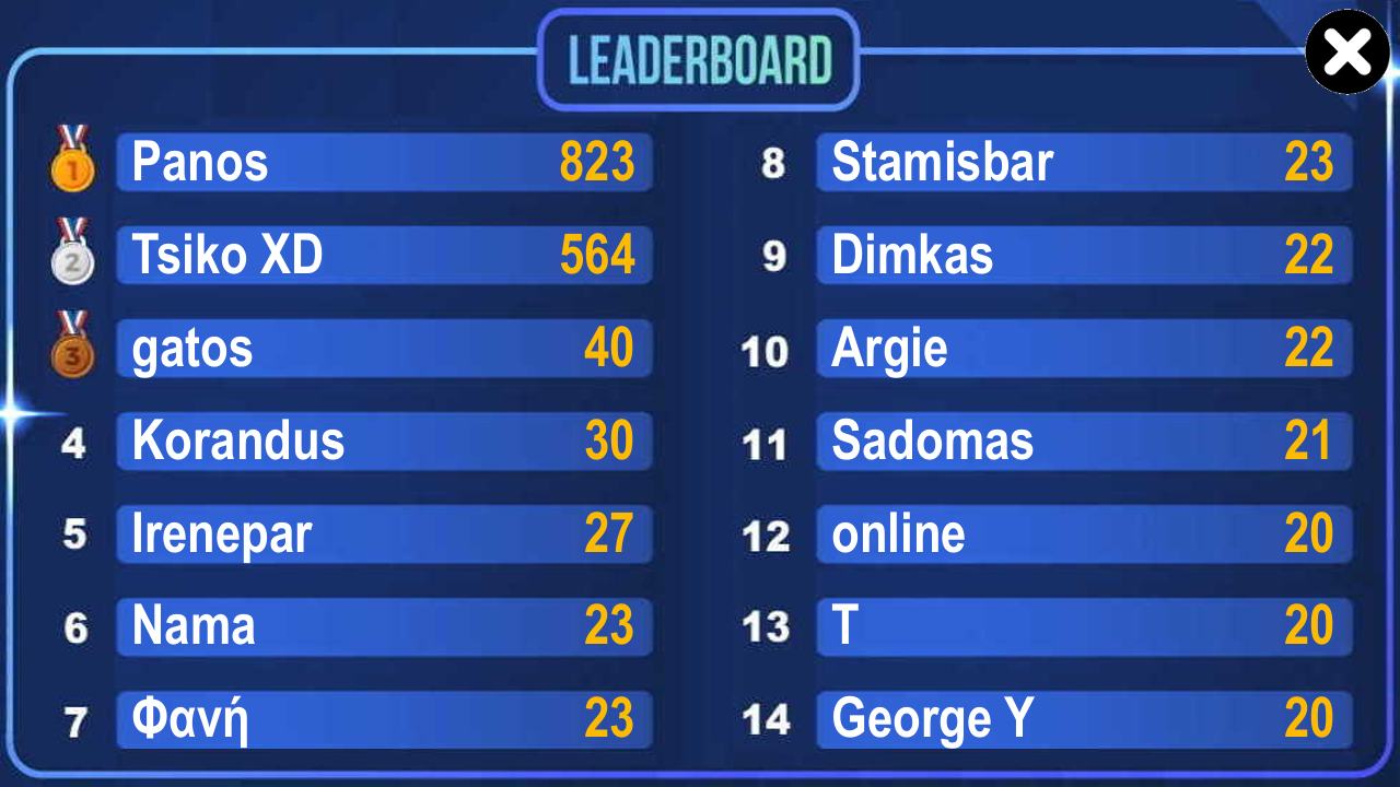 リーダーボードアイコンをタップすると、世界の最高スコアが表示されます。リーダーボードは全世界でオンラインですが、インターネットに接続していなくてもゲームをプレイできます。