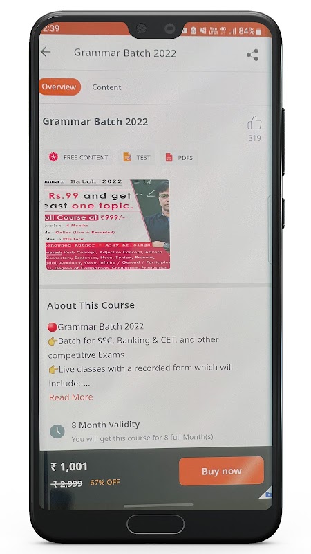 コースを購入して、無制限の視聴回数、無料のテストシリーズ、毎日のクイズなどを入手してください
