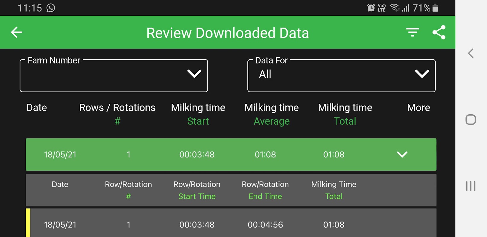 QCONZ MbT アプリは、牛群の最大搾乳列/ローテーション時間を設定します。