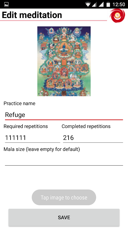 瞑想トラッカーは、事前定義された予備的なプラクティスグループ(Ngondro)が付属して、あなたはもちろん、あなた自身のプラクティスを追加し、練習や日々の繰り返し数を完了することを目的と日付に基づいてスケジュールを計画することができます。各セッションは、可能な後の使用のために格納されます。