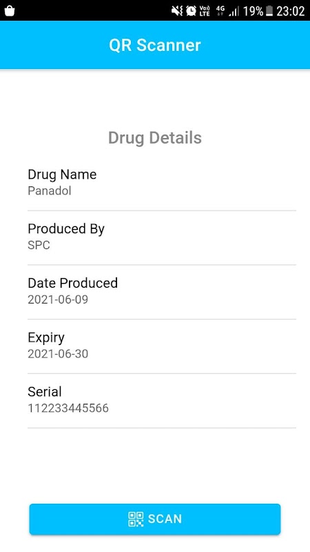 To check for authenticity, the drug QR code is scanned with the MedScan QR reader to access the data.