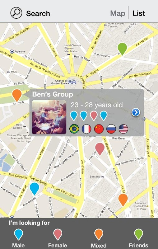 - Search groups including 2 to 9 persons, challenge them with the « Cap ou pas cap?” meet them and enjoy a cocktail together!