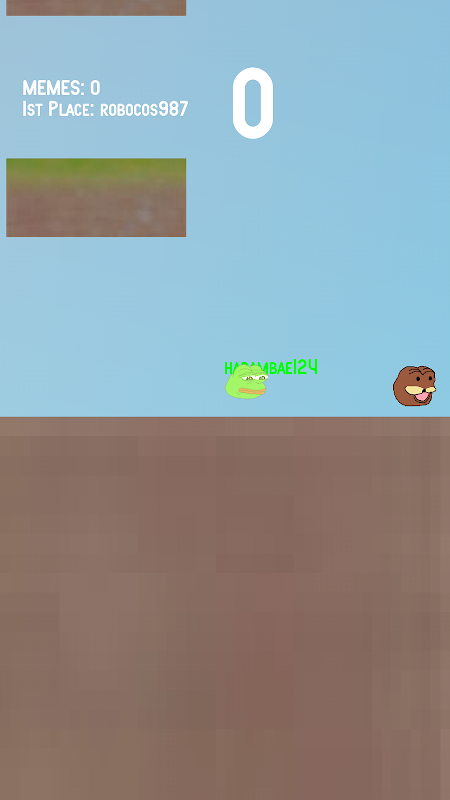 Hop away from the Illuminati and collect as many memes as you can! You can play as Harambe, Doge. Spurdo :DD and other memes.