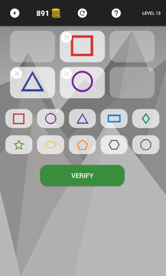 There are more game modes: letters, numbers, shapes, flags, fruits and animals. Choose the one you prefer then solve as many levels as you can.