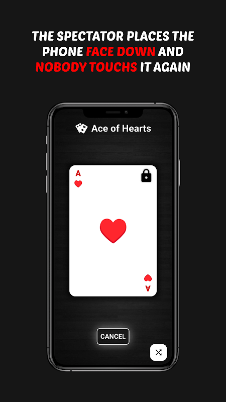 MENDAXを使ったマジックは即興的で、様々な方法で演じられます。例えば、観客はデックをシャッフルし、カードを1枚自由に選びます。その後、スマートフォンを置き、二度と触りません。マジシャンは観客に2通りの答えが可能な一連の質問をします。例えば、「このカードは赤ですか?黒ですか?」と尋ねます。答えが赤の場合、「ハートですか?ダイヤですか?」と続けたり、「絵札ですか?数字ですか?」と尋ねたりします。観客は正直に答えることも嘘をつくこともできますが、マジシャンはそれぞれの答えの裏にある真実を見抜くことができます。最終的に残るのは、観客が最初に選んだカード1枚だけ。驚きの展開です!