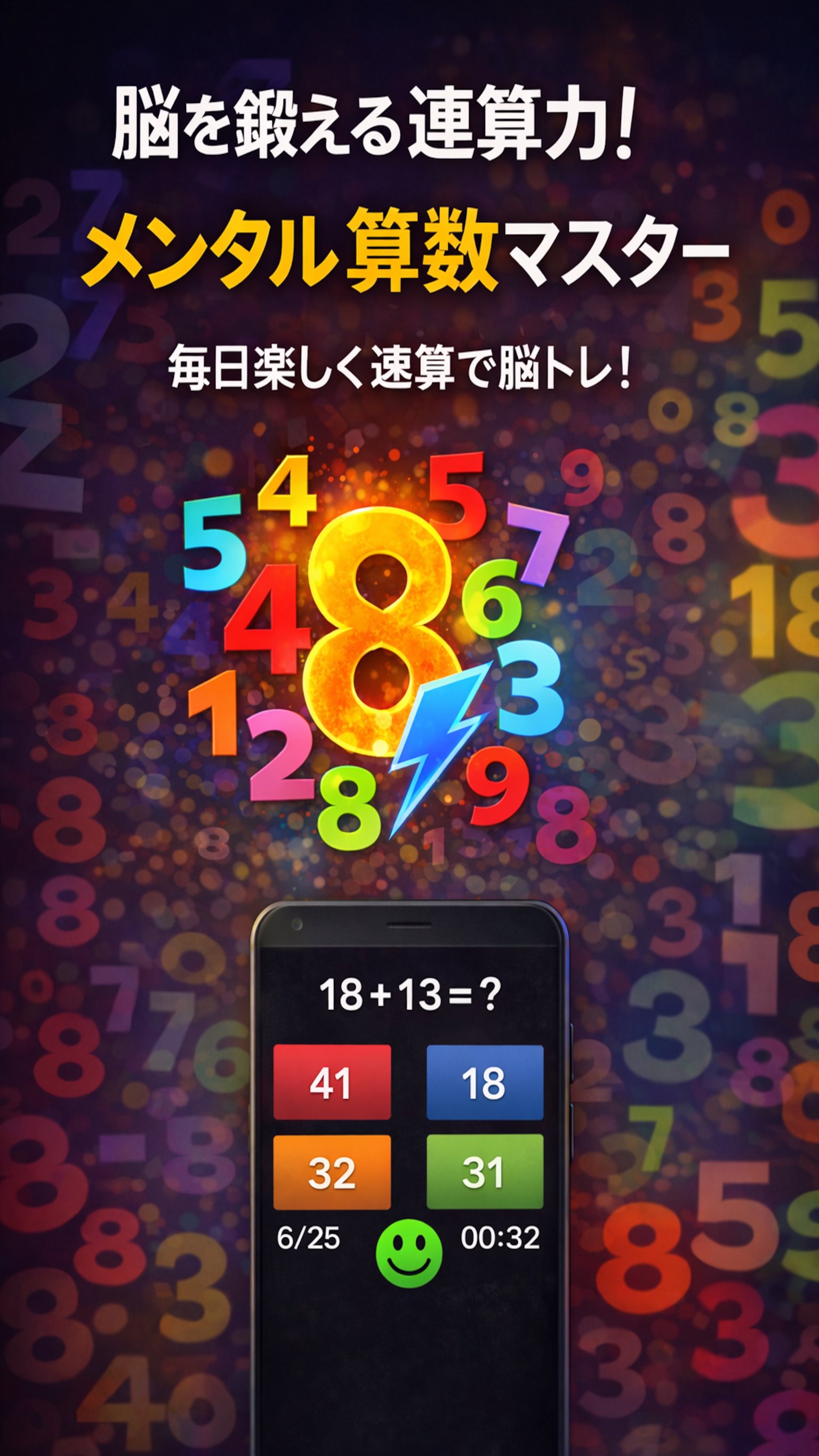 Mental Mathは、暗算力を高めるために設計された、速くて効果的な脳トレアプリです。毎日の短いトレーニングで、思考スピード、集中力、計算の正確さを向上させることができます。