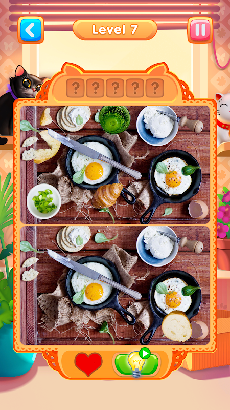 豆知識:科学者たちは、猫の目は人間の7倍も敏感であることを発見しました。だからこそ、猫は人間よりもはるかに多くの細部を見ることができ、暗闇でも見ることができます。そして、どんなに難しいレベルでも違いを見つけることができるのです!さあ、プレイして「猫の目」を鍛えましょう!