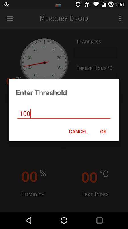 マーキュリードロイドは、Androidモバイルアプリケーションの「ホーム天気が監視」ベースのIoT(モノのインターネット)の一種です。このアプリケーションは、摂氏、ケルビン、華氏、熱指数、湿度などの読み取りホーム気象活動が可能です。基本的に、このアプリケーションはNodeMCU(ESP-8266MOD)とのIoT WiFiモジュールと通信することができます。 NodeMCU(ESP-8266MOD)はDHT-11センサーの温度と湿度データを収集マーキュリードロイドのIoT組込みシステムの頭脳であることに、このセンサデータを送信することはWebサーバーだと、その後マーキュリードロイドAndroidモバイルアプリケーションはNodeMCU(ESP-8266MODからこのデータを読み取ることができます特定の静的IPアドレスを使用して)、または水銀ドロイドウェブサーバ。デフォルトでは、この静的IPは192.168.0.107です。このアプリケーションは、ユーザー指定された閾値と比較することにより、過度の温度を測定するために特別な機能を持っていました。しきい値は、このアプリケーションよりも摂氏温度よりも低い値である場合は、しきい値が摂氏値よりもおろし金であれば、それはあなたが警戒与えない警告できます。