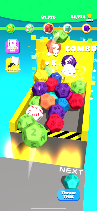 3d 큐브를 같은 색과 숫자로 던지면 머지되는 게임입니다.