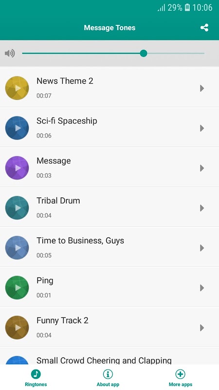 新しいブランドメッセージトーンに目を光らせている場合は、あなたの検索は終わりました。 メッセージの着信音 ワンクリックの距離です。あなたが注目度抜群の着メロを持つようにしたい場合は、メッセージの着信音 をダウンロードしてください。あなたは退屈な古い音の疲れている場合は、時間が新しいsms 着信音 とそれらを交換することになりました。 あなたはトレンドに従うと、流行になりたい場合は、sms 着信音 のアプリでクールメッセージの着信音 は、必要があります。