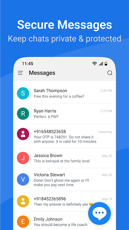 スムーズなコミュニケーションのための頼りになるツールはメッセージ アプリです。音声、ビデオ、またはテキスト メッセージを即座に送信し、メディア共有、グループ チャット、絵文字を使用します。洗練されたデザインとエンドツーエンドの暗号化により、愛する人との連絡を簡単かつ安全に保つことができます。