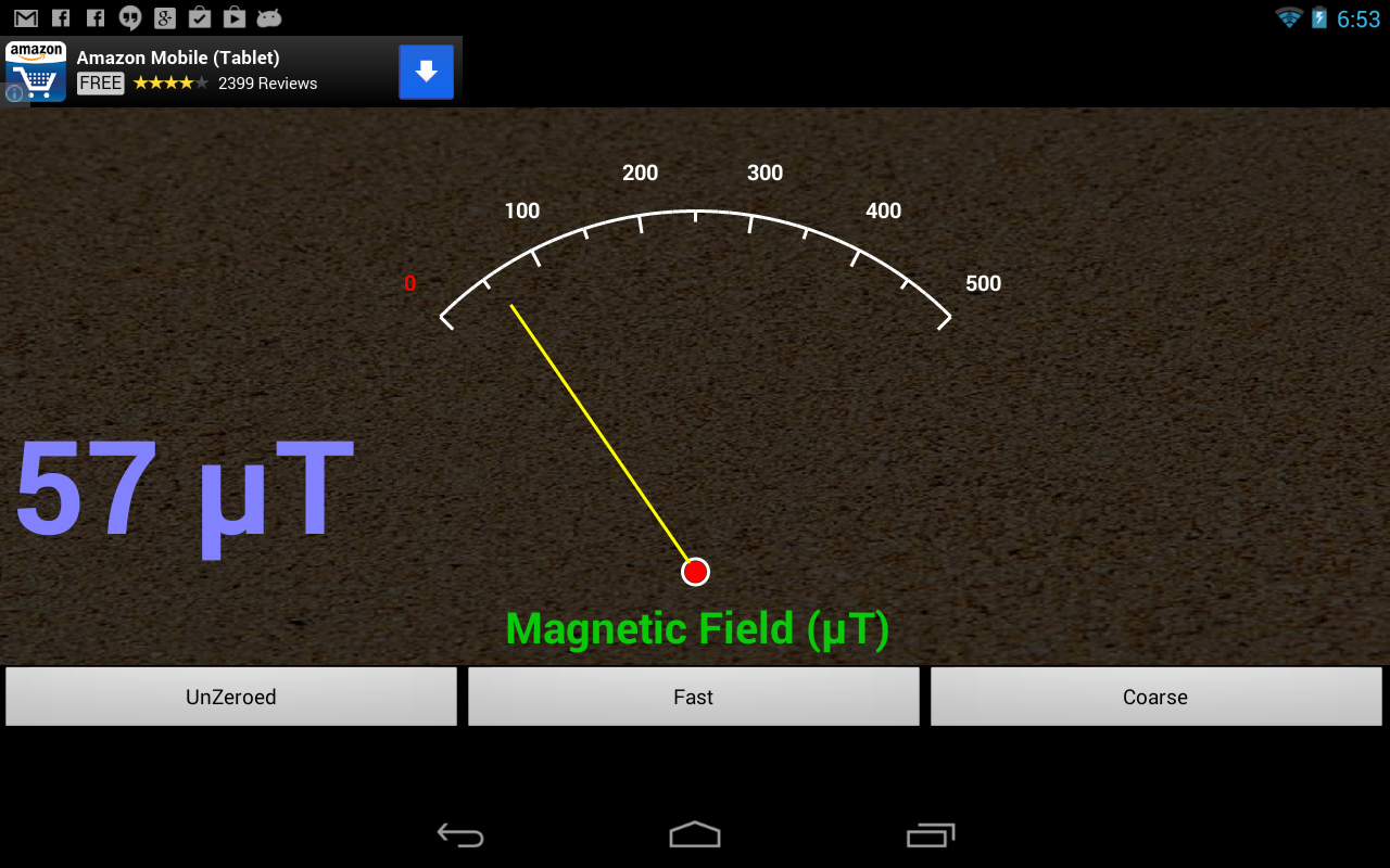 Uses the built in magnetometer to show the magnetic field near the Android phone or tablet. Three metering speeds: Fast, Medium, Slow plus Zero offsets, two scales.