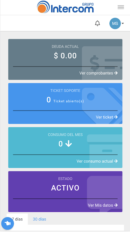 ここでは、支払いバウチャーの確認、請求書のダウンロード、ネットワーク上の問題の報告、インターネット消費の表示、サポートチケットのオープンなどの機能を利用できます。