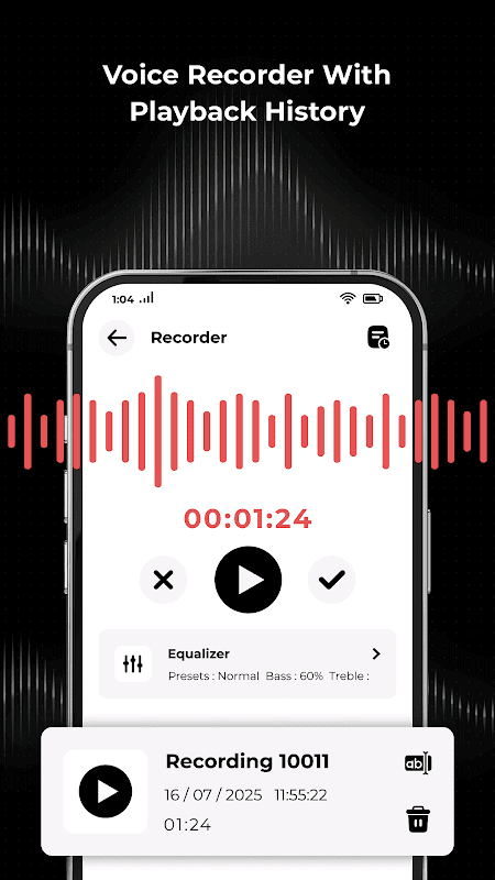 > クリアな音質とプロ仕様のイコライザー設定で、あらゆる音声を録音できます。