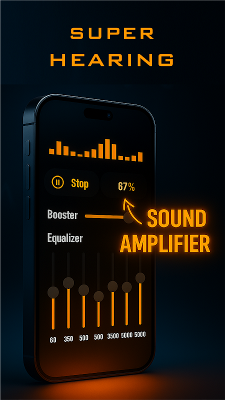 スマートフォンをヘッドフォンやスピーカー用のマイクアンプリファイアーとして活用しましょう。有線またはBluetoothのヘッドフォンやスピーカーを接続するだけで、増幅された音声をリアルタイムで聞くことができます。これは軽度の難聴がある方や、騒がしい場所や遠くの音を聞きたい方に最適です。マイクアンプリファイアーは、スマートフォンだけでより大きな聞こえを提供します。高価な補聴器は必要ありません。