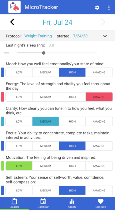 Help validate the effects of microdosing (taking small doses) with various over-the-counter health supplements such as Lion's Mane, Ashwaganda, L-creatine, B vitamins, etc. to measure the actual changes on your mood and wellbeing. The app provides an easy to use mechanism to track your progress following a well-defined clinical protocol in conjunction with your health professional.